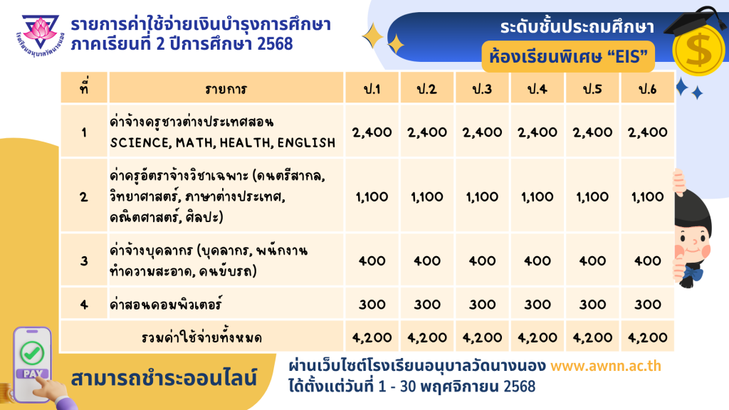 โรงเรียนอนุบาลวัดนางนอง ดำเนินการสอบวัดระดับการประเมิน และพัฒนาสู่ความเป็นเลิศทางคณิตศาสตร์และวิทยาศาสตร์ ประจำปี 2568 ของนักเรียนระดับชั้นประถมศึกษา ในโครงการประเมินและพัฒนาสู่ความเป็นเลิศทางคณิตศาสตร์และวิทยาศาสตร์ (Thailand Educational Development and Evaluation Tests: TEDET)