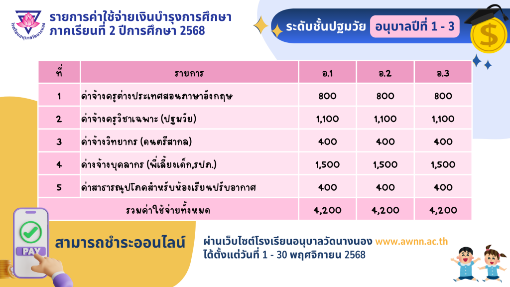 โรงเรียนอนุบาลวัดนางนอง ขอแสดงความยินดี กับ ผู้บริหารและครูที่ได้รับ “รางวัลคุรุชน คนคุณธรรม”และ”รางวัลนวัตกรรมสร้างสรรค์คนดี” โครงการโรงเรียนคุณธรรม สพฐ. ประจําปีงบประมาณ พ.ศ. ๒๕๖๘