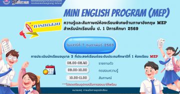ประกาศรายชื่อผู้มีสิทธิ์สอบความรู้และสัมภาษณ์ห้องเรียนพิเศษด้านภาษาอังกฤษ MEP สำหรับนักเรียนชั้น ป. 1 ปีการศึกษา 2569