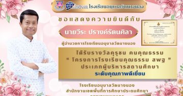 โรงเรียนอนุบาลวัดนางนอง ขอแสดงความยินดี กับ ผู้บริหารและครูที่ได้รับ “รางวัลคุรุชน คนคุณธรรม”และ”รางวัลนวัตกรรมสร้างสรรค์คนดี” โครงการโรงเรียนคุณธรรม สพฐ. ประจําปีงบประมาณ พ.ศ. ๒๕๖๘