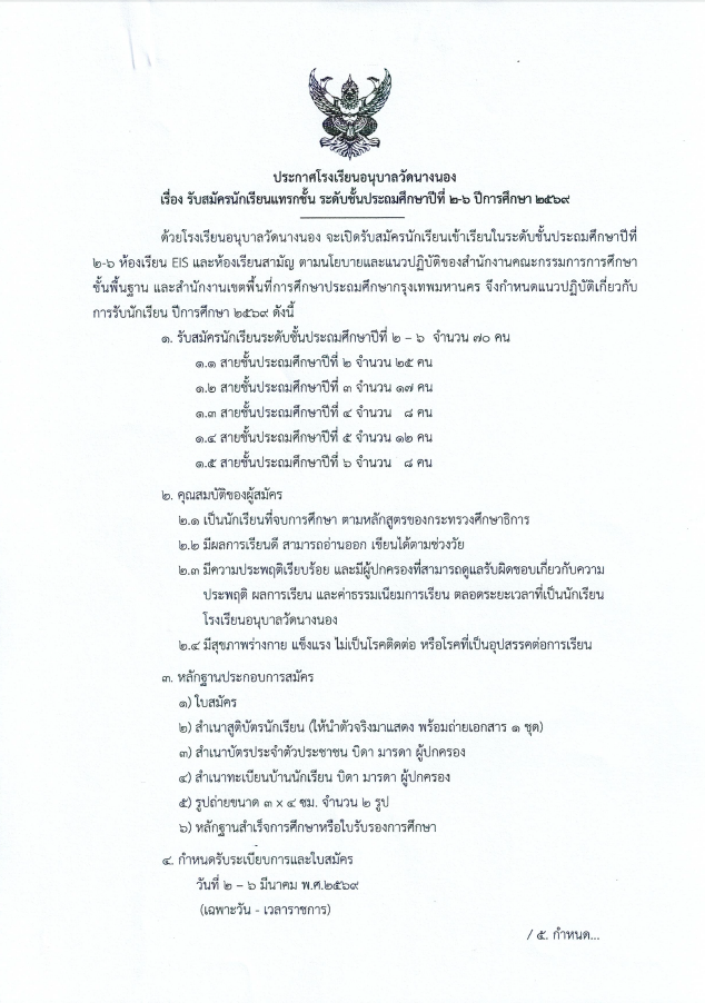 ประกาศรับสมัครนักเรียน ระดับชั้นประถมศึกษาปีที่ 1 (ห้องเรียนสามัญ) ปีการศึกษา 2569 26 ธันวาคม 202526 ธันวาคม 2025 ข่าวประชาสัมพันธ์/ประกาศ/ข่าวสาร FacebookFacebookXTwitterLINELine จำนวนผู้เช้าชม : 5 Fac […] admin26 ธันวาคม 2025