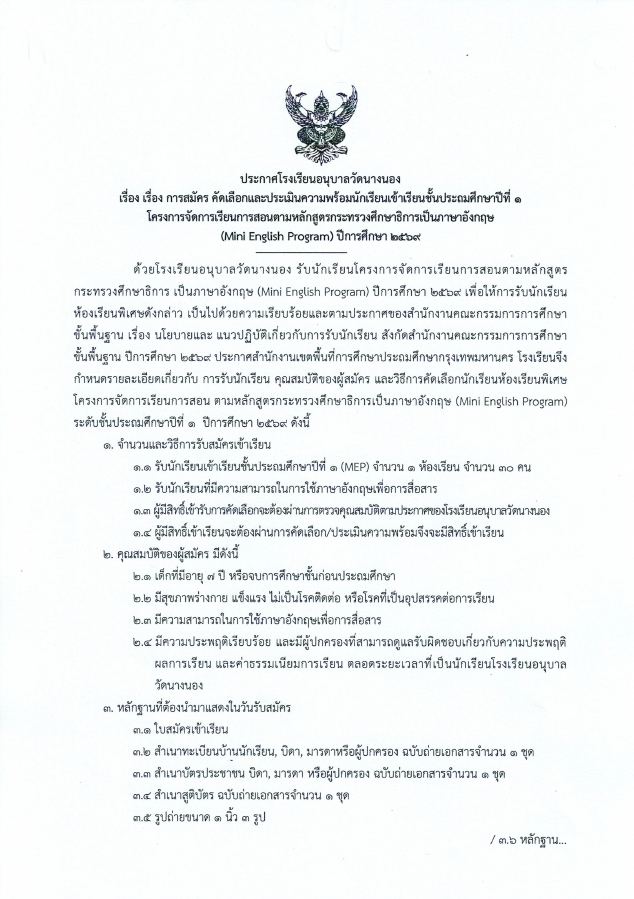 ประกาศรับสมัครนักเรียนชั้นประถมศึกษาปีที่ 1 (ห้องเรียน MEP) ปีการศึกษา 2569 26 ธันวาคม 202526 ธันวาคม 2025 admin ข่าวประชาสัมพันธ์/ประกาศ/ข่าวสาร FacebookFacebookXTwitterLINELine ประกาศรับนักเรียน-ป.1-ห้อง-MEPดาวน์โหลด จำนวนผู้เช้าชม : 18 FacebookFacebookXTwitterLINELine